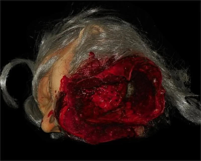 Condemned for a crime he didn’t commit, this old mad expected his throat to be slit, but the drunk executioner upholding the law, missed the neck by hair and hacked off his jaw. Now Big Mouth talks no more. His noggin set free from his decrepit body, and posted on a stake as a warning to all those who may cross the wicked Queen, slowly rots under the hot midday sun. Keep your nose clean around these parts, or else you may end up like our grey-haired friend. The Big Mouth Severed Head Halloween decoration is a unique Horror Dome original. It’ll look amazing when displayed with a collection of severed heads, or when placed around a corner to spook an unsuspecting guest as they make their way through your haunted house. Hand detailed for a realistic appearance, he features brains and veins exposed from the underside of his skull.