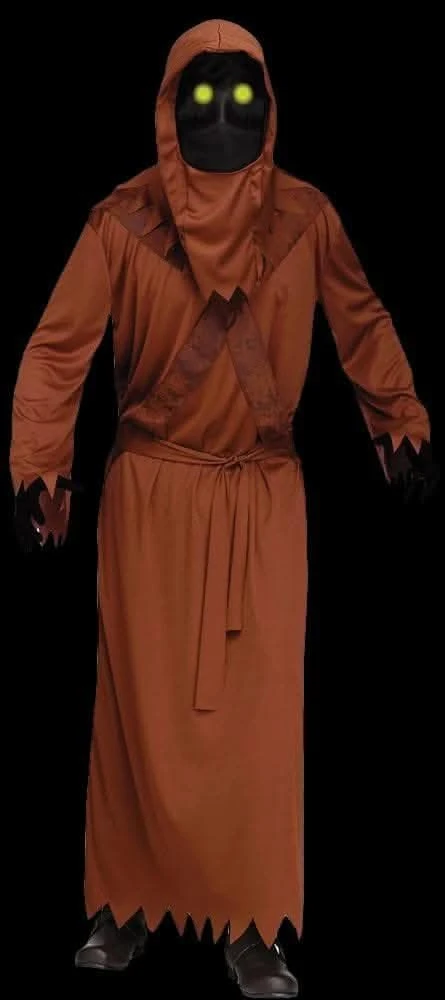 Besides being very hot the desert can be lonely, foreboding and, let’s face it, downright scary. Especially when the Fade Eye Desert Dweller makes his appearance. He’s fearsome, scary and a little mysterious. In short, everything you want to be! Includes robe, hood, fade eye mechanism, belt with gauze, and gloves. Fits adult sizes one size fits most up to 6’/200 pounds. Requires 3 AA batteries not included.