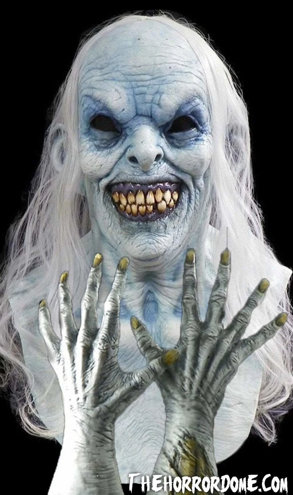 Female Apparition Halloween Mask and Hands Features: