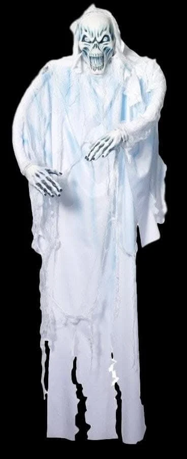 There no such thing as ghosts, right? That’s what your tell yourself as you saunter confidently through the halls of a supposedly haunted mansion. Sure, there are some cobwebs, a dank odor or two, and a few occult books scattered around, but you’re certain it’s all pretend. You turn the corner, and suddenly, a puff of fog hits your face, a strobe light erupts, and a Hanging Ghost drops down right in front of you. You feel your heart pounding as you step back and gasp.