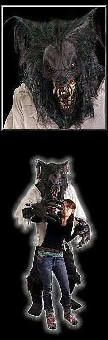As the darkness of night starts to set in, you see a full blood-colored moon rising about town. First your skin starts itch and tingle, then coarse, think wolf hair starts pushing up through every follicle. You howl in pain as your teeth suddenly grow into razor sharp canines and your nose and ears transform into precision sensors, perfectly calibrated for the midnight hunt. You damn this ancient curse with your last human thought till morning. For now, your bloodlust takes over, and you stalk the streets looking for a victim. Lock the doors and load up the silver bullets, because the Night Terror Werewolf is on the prowl. Halloween costumes from The Horror Dome provide Hollywood-style looks without the high production costs. These impressive costume sets can add up to a foot to your height, and include oversized paws with massive claws. Freak out the local trick or treaters, or petrify guests at your haunted house dressed as the Night Terror Werewolf.