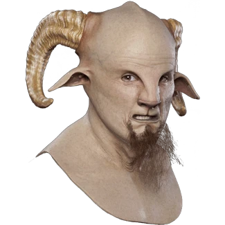 Whether from the dark labyrinths of fantasy or the ancient woodlands of myth, this old satyr probably wont be found prancing happily through the grass. Puck is a freakish manimal with floppy goat ears and large curved ram horns. The horns are made with lightweight, durable resin that add a lot of character to Puck without making it cumbersome to wear.